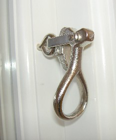 Barnsäkert vädringsbeslag, finns både som mässing och förnicklat.